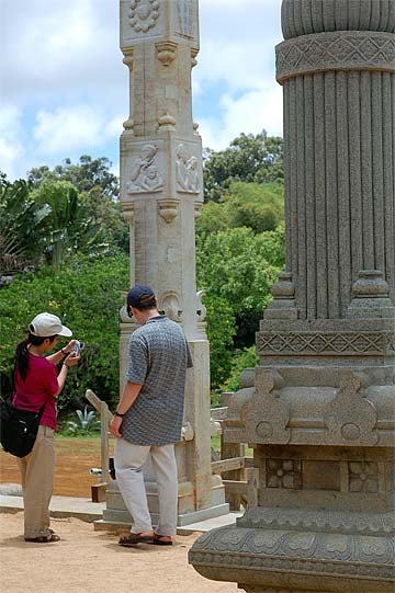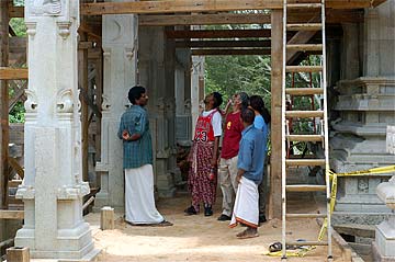 Guests marveling at Iraivan's pillars