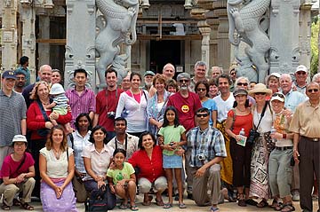 After the first tour, visitors line up to get Bodhinatha's autograph on their books.