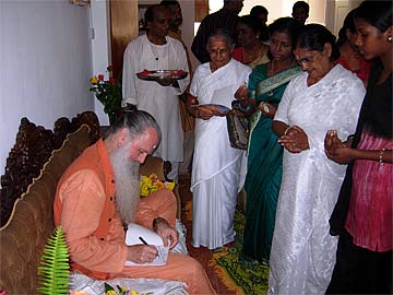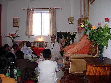 It's the last day of Paramacharya Palaniswami and Yogi Jivanandanatha's visit to Mauritius. Most of the members met at the residence of Brahmachari Vel Mahalingum at Mahebourg, in the south, which is just few minutes drive to the SR International Airport. The residence of Brahmachari Vel overlooks the shore a few metres away...