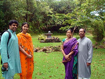 Pratap and Seetha beside the pool outside the Kadavul Siva Temple. Both genuinely want to return to Kauai to visit the temple. "It is one of the most beautiful places I have ever seen" said Pratap.