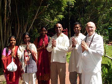 Chetty Balram (center) has been visiting the Aadheenam daily with his four students while on pilgrimage here from South Africa. He met with Sadhaka Jothinatha (far right) and plans to introduce the International Magazine, "Hinduism Today" to forty separate groups or "Societies" in South Africa.