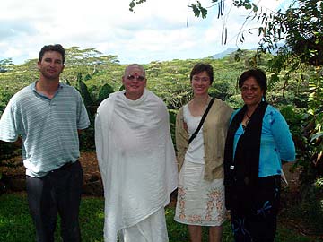 Three early morning visitors arrived from Wellington and Hamilton, New Zealand and were given a spontaneous tour of the Iraivan Temple by Sadhaka Haranandinatha. Glynis Mitchelson "Ngakari" is a Mouri native of New Zealand (far right) and agreed with her friends that the beauty and peace of this incredible place was "heavenly."