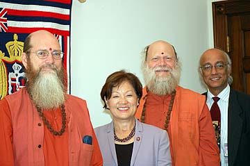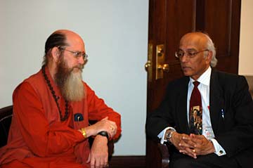 Sannyasins Arumugaswami and Sivakatirswami went on a whirlwind, jam-packed mission to Washington D.C. with events covering four days, from the 15th to 18th of June, Thursday, Friday, Saturday and Sunday. The travel and hotels were generously sponsored by the Swadhyay Pariwar. The journey had four components: 1) visits to congressmen and senators, 2) visiting local temples 3) attending the grand events of the Swadhyay Pariwar and a little site seeing before flying home at 3:30 am on Monday morning. will will bring you the story in four segments on TAKA. And later, some video of events along the way.