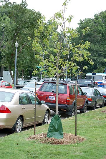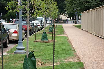 Sugar maples have been transplanted from their nursery to the streets.