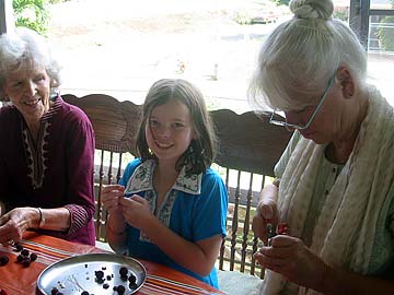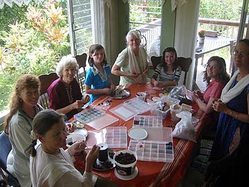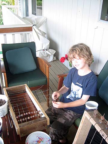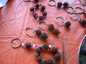 "Iraivan Morning with lots of Shakti Power! The Rudraksha project continues . . . the Alahan family and Brahmachari Rajadeva do a lot of preparation to keep us all busy stringing and creating these beautiful gifts for the Mini Mela. We invited our resident Task Forcers as well as visiting family members. Everyone shares this beautiful flow of working for Iraivan. Visiting families love to see the energy and harmony and even the very young children love to help.