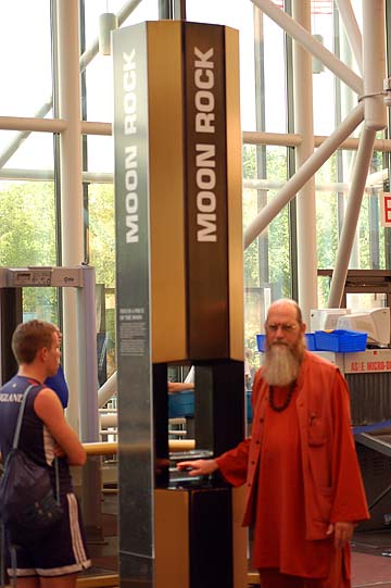Arumugaswami has his picture taken touching the moon rock.