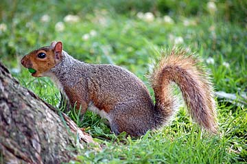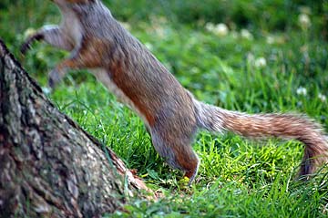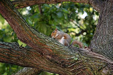 It scurried off up the tree to eat the treat in peace.
