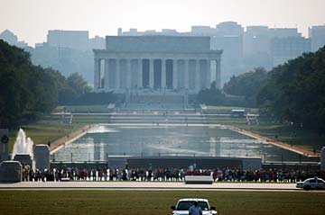After a good walk we arrive at the foot of the Lincoln Memorial, looking back to where we were.
