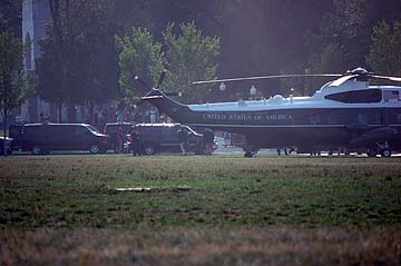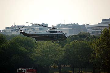 But, Lo! there are security forces in front of us... and suddenly from the left the sound of giant Marine One Helicopters -- well, who knows, maybe it was Marine 2, 3,or 4 (smile).