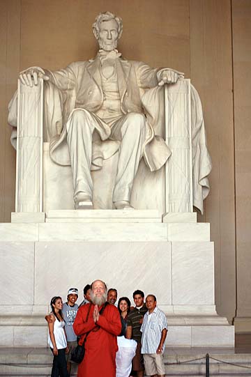 Inside with the giant statue of Abraham Lincoln. Wow! It's even bigger than we imagined.