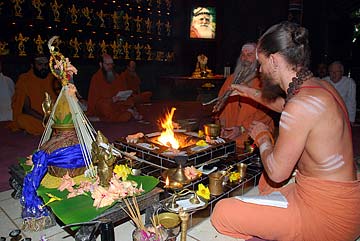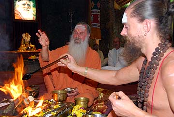Back on Kauai at the Aadheenam, we begin a short 4-day phase with a homa. Paramacharya Palaniswami presided and gave a short talk afterwards.,
