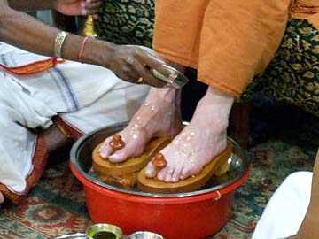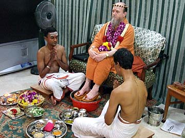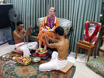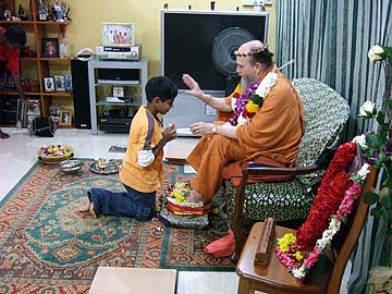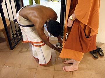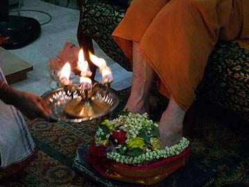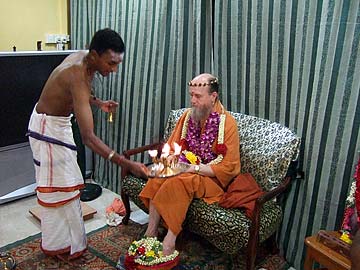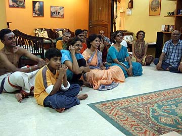 On the evening of the second day in Singapore Bodhinatha went for satsang and pada puja at the home of Kulapati Dohadeva Sanmugam.
