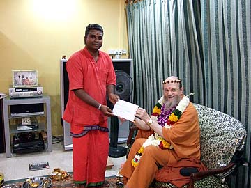 Bodhinatha makes a financial contribution to their charitable feeding program.