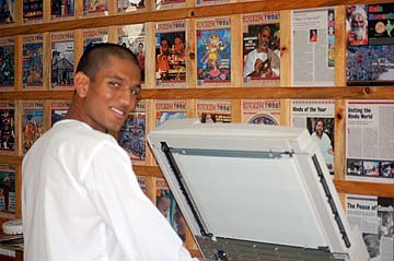 He worked with Arumugaswami today, making copies of youth articles in Hinduism Today to send to our new youth editor, Lakshmi, in Singapore. They listed out nearly three dozen article ideas to be done by youth.