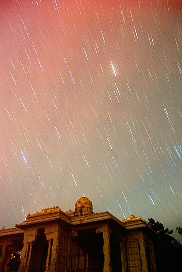 15 minute evening timelapse over Iraivan... "Falling Stars." The broken star paths were caused by passing clouds.