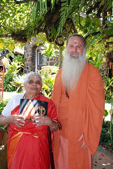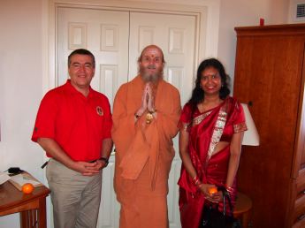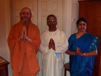 In the afternoon Bodhinatha met with devotees. Here he is with Shanmugavadivel and his wife.