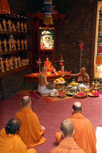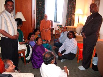 David Jayasingh came to meet Bodhinatha to receive Bodhinatha's blessings and advice for the newly formed Canada Saivite Council for spiritual support. This ten member group have received training in social service and been registered and recognize the Canadian Government. Their questions centered about hospital visitations with those who are nearing the end of life. Bodhinatha's answers were to be a good listener; your presence alone is a great blessing; try, if you can, to help the person release resentments, forgive others, and prepare for transition, knowing that life is eternal, and that as they gain experience they should get together regularly to share what they have learned in this most sensitive area of counseling.