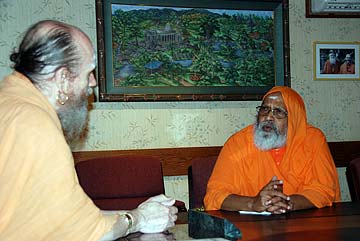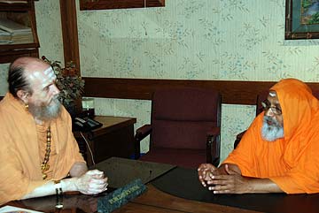 We were very honored today to have a visit from one of Hinduism's great leaders, Swami Dayananda Saraswati. Here he is with Bodhinatha.
