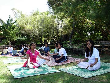 Hatha Yoga is taught to enrolled Master Course students to come for their monthly seminar run by the Himalayan Academy.