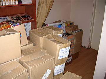 Our new stock of books shipped to the Mini Mela. Some funny problems with termites ...