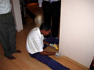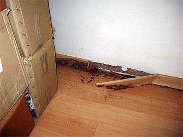Looking for the termites hiding places behind the wall wooden railings...