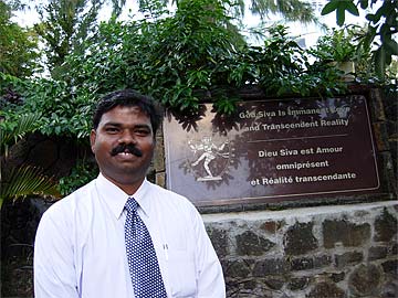 The Mootoosamy family from Reunion island, a French territory a few miles from Mauritius. The three youth have had a chance to attend our three hour Bodhinatha's MC Gathering at the Park. Very inspired... They look forward for the Himalayan Academy to organise something of that kind in Reunion Island. Lucie (middle) has completed her University degree in France and wants to study with Bodhinatha.