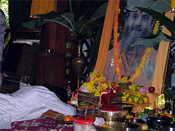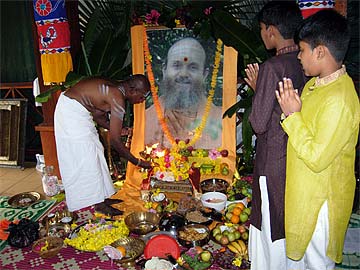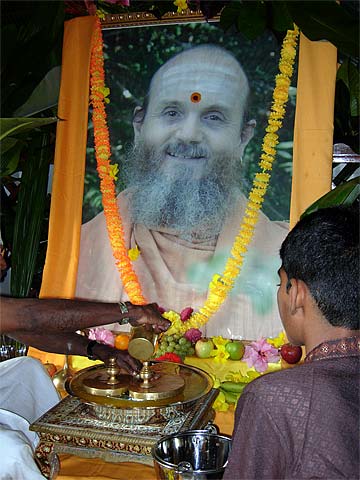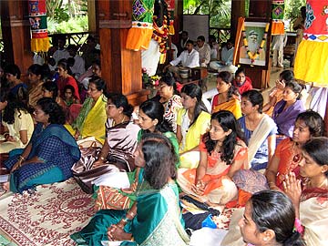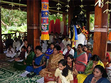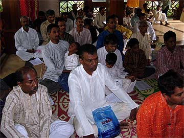 The Mandapam is filled with the devoted chanting of the Guru Mantra.