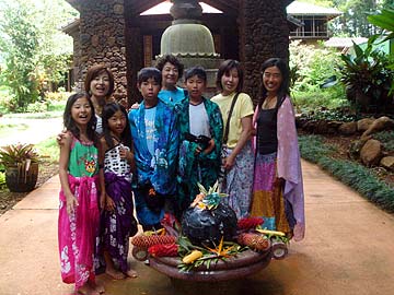 Yumi Teraguchi who lives on Kauai brought her family and friends who are visiting from Kamakura, Japan. Kamakura is a pilgrimage site and is famous for its very sacred Shinto Temple, the giant Kamakura Buddha and numerous shrines.