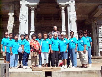 Kuule (far right) organized a special first-time visit for eighteen members of the Kekaha Senior Center. A very bright and happy group with a deep appreciation for their tour of the Iraivan Temple today. This was also true of the botanical gardens filled with plants and trees from all over the world and lotus ponds brimming with koi fish and beautiful lotus flowers.