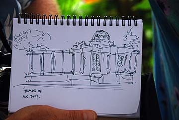 It was tour day today. One of our guests makes a sketch of Iraivan