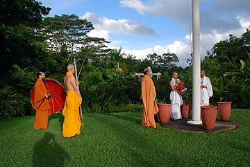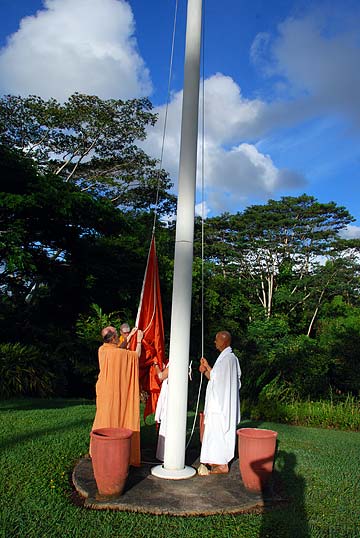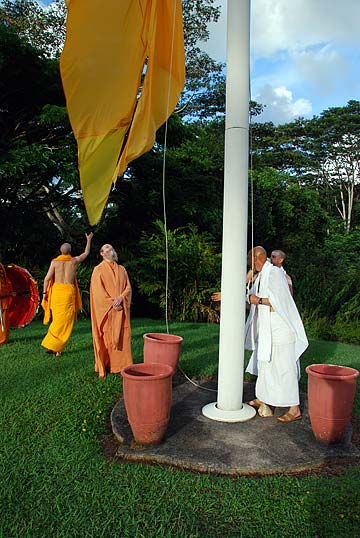 It was another beautiful day at the Aadheenam. Photos of the Chitra puja and flag raising for the new season speak for themselves. We will excerpt as usual the guidelines for the new season, from our Saiva Dharma Shastras: