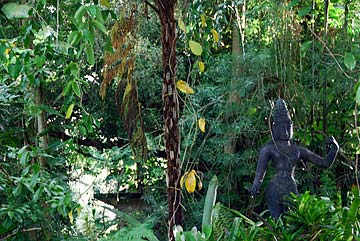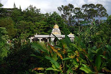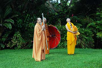 The Aadheenam Realms of this period are: 1) San Marga, the straight path to God, with its rudraksha, neem, konrai and bilva forests, and Agni Mandapam. 2) The Wailua River, with its Nani Kaua Waterfall and Pond, Bali Hai Falls and Ganga Sadhana Ghats. 3) Pihanakalani Trail a legendary Hawaiian path toward the volcano, beginning at the Aadheenam and continuing past the Orchid Pavilion of Religions to the Teak Tree Turnaround at the edge of Rainbow Amphitheater.