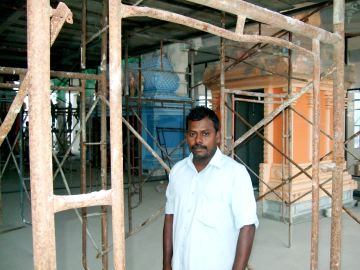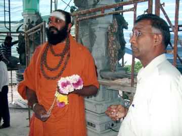 Founded by a rishi whom Gurudeva respected highly, this is a powerful, special temple. When Yoginathaswami was an aspirant preparing to come to Kauai Aadheenam, Gurudeva sent him here to live with the rishi and help do the pujas in the temple. On the right is Bala, a temple committee member and friend of Kauai Aadheenam.