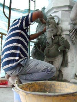 Here a silpi shapes Ganesha out of cement.
