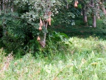 Yoginathaswami tells us that a certain type of bird builds nests hanging in the trees here, strategically positioned next to a marsh so they are undisturbed by humans. They implant fireflies in the ceilings of their nests to light them up.