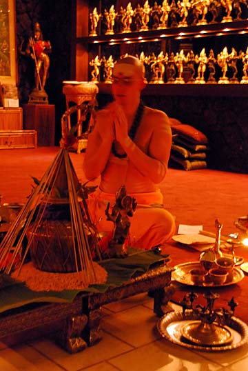 After a dynamic three day retreat, we begin a 4-day phase. Bodhinatha gave his talk today as usual. He spoke about the esoterics of worship, how Gurudeva was able to see into the subtle way the inner worlds worked. The temple ceremony strengthens the connection. We provide energy to the temple through the offerings, then blessings come back.