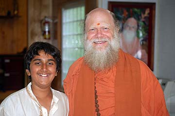Sivakatirswami shows Inder's son, Eashan a little bit of what we do in our high-tech publications office as he has been working on getting the next digital edition of Hinduism Today out the door. Eashan is an avid Mac fan, has his own Macbook Pro and makes iMovies for school and listens to music on his iPod. He's also a vegetarian by his own choice and Arumugaswami is recruiting him to write about that for Hinduism Today.