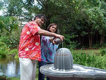 Harihar and Kalpana Patel are from New Jersey and are here on their first pilgrimage to the Kadavul Siva temple.