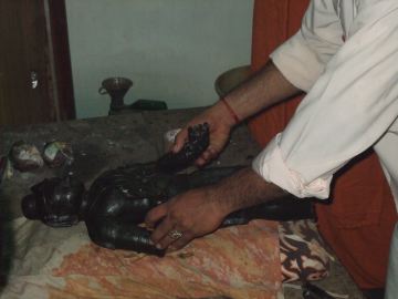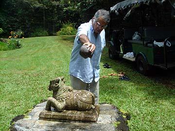 Sunil then bathes Nandi with milk and water.