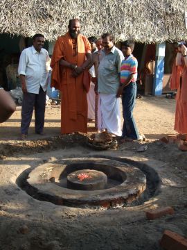 On August 26, we visited Swamimalai where the middle course of the avudaiyar (base for the sphatika Lingam) for Iraivan Temple was to be cast. Here is a full scale model in cement, created by our temple sthapati, Selvanathan.