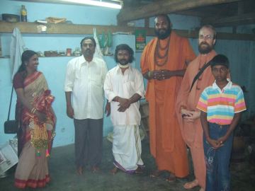 (left to right) Ponni Selvanathan, Selvanathan Sthapati, one of the metal sthapatis, Yoginathaswami, Senthilnathaswami and Selvanathan's son.