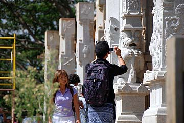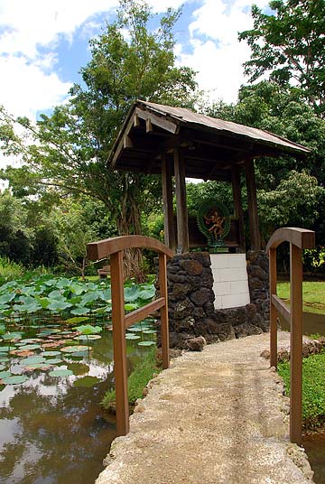 The newly renovated bridge to the shrine at the lotus pond which now holds a lovely statue of Lord Nataraja, signifying the form of God that inspired the saints at the beginning of the Path of the Saiva Saints.