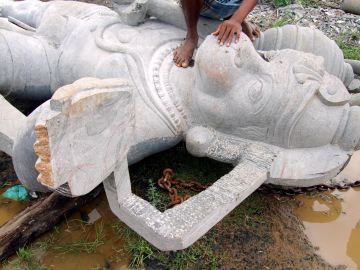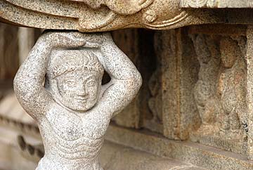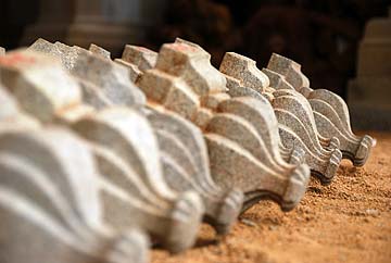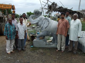 Finally, the main reason we came to Mahabalipuram: Here is the Hanuman statue, almost finished and over nine feet tall, to be placed at Hanuman Landing, near Iraivan Temple. They were working on it when we arrived, but quickly engaged the crane so we could have a good look at it.