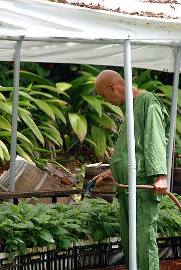 Sadhaka Adinatha carefully watering more trees that will be planted on Himalayan Acres. His vision for 10,000 precious hard woods to be an endowment for the future is slowly but surely manifesting.