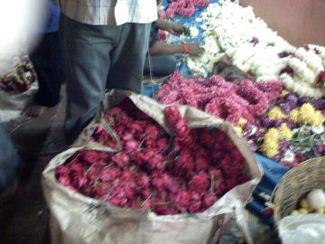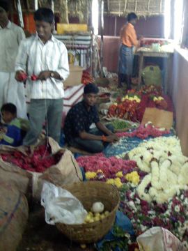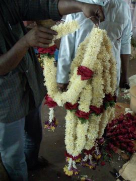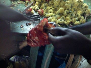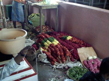 Garlands and flowers that would soon be garlands were piled everywhere.