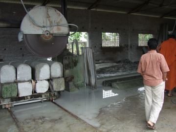 This carving site has a giant stone cutting saw. It's really, really big.