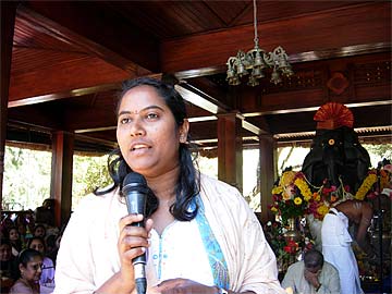One devotee giving a testimony about how Lord Ganesha answered his prayers to help his two children obtain scholarships to study in American Colleges.