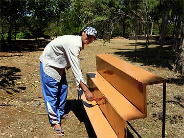 Here is Gowtam painting a rack where devotees place oil lamps they bring with their offerings.