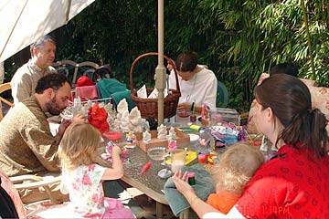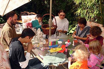 Young and old alike expressing Ganesha bhakti, painting Ganesha murthis