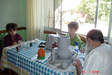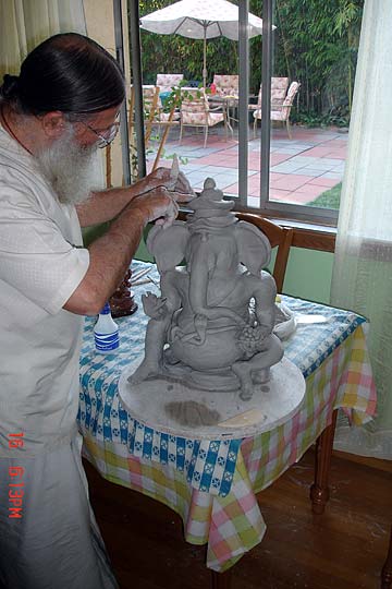Hotranatha Ajaya is working on a beautiful plaster image of Ganesha in preparation for this year's Ganesha Visarjana in California... We have photos of the annual "let's make Ganeshas" satsang of the Golden Gate Mission sishya
